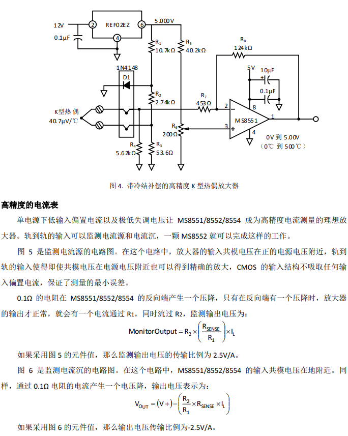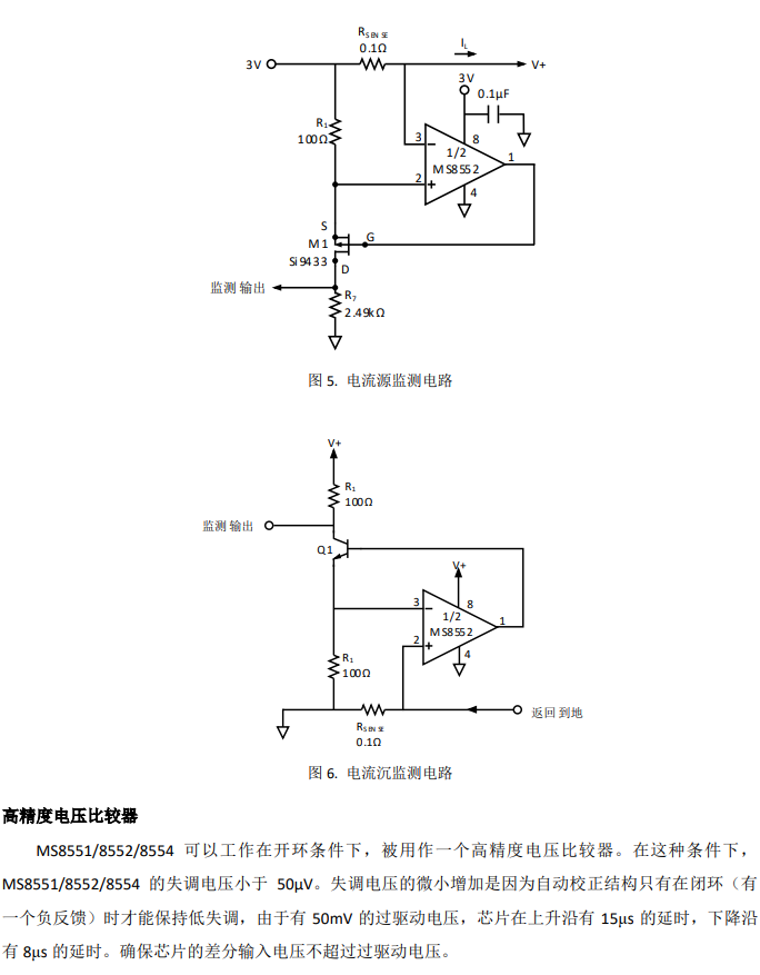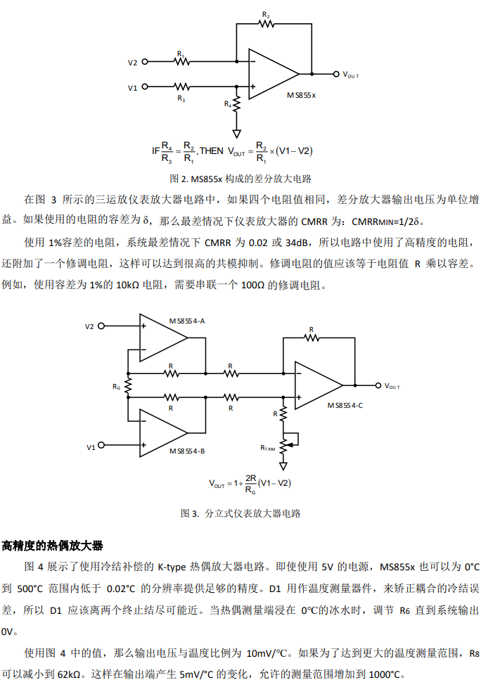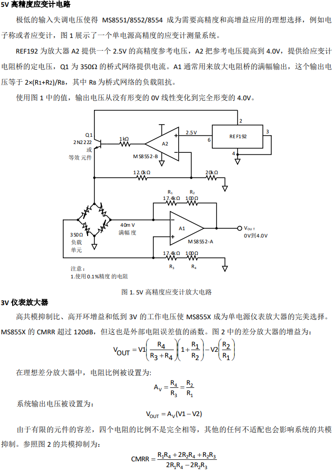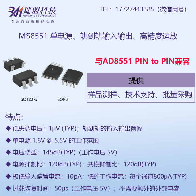 MS8551是输入输出轨到轨的高精度运算放大器,它有极低的输入失调电压和偏置电流,单电源电压范围为1.8V到5V,