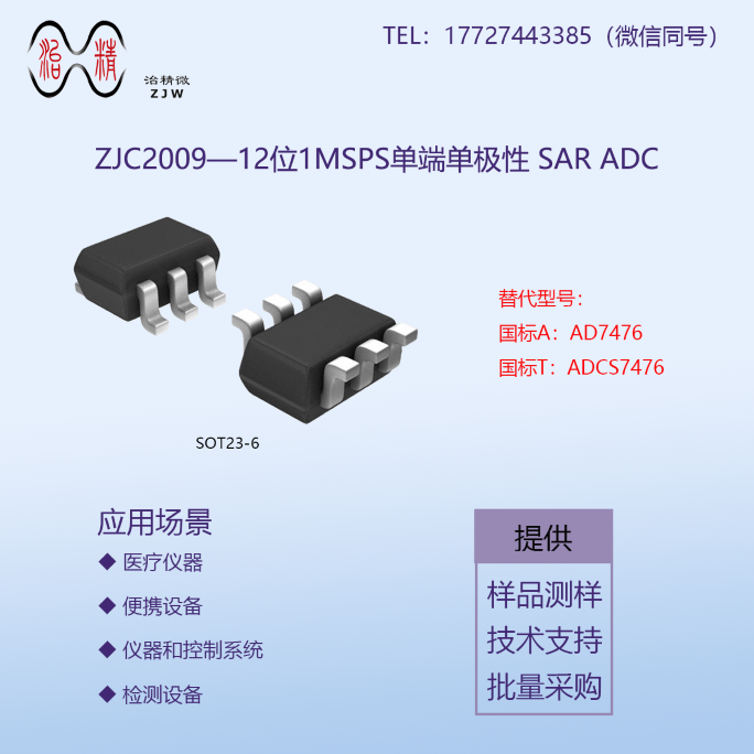 ZJC2009是一款低噪声、低功耗、12位单端输入逐次逼近型模数转换器(SAR ADC),具备1MSPS吞吐率,